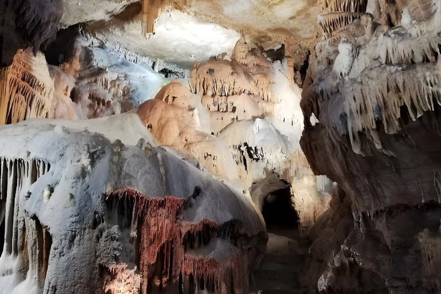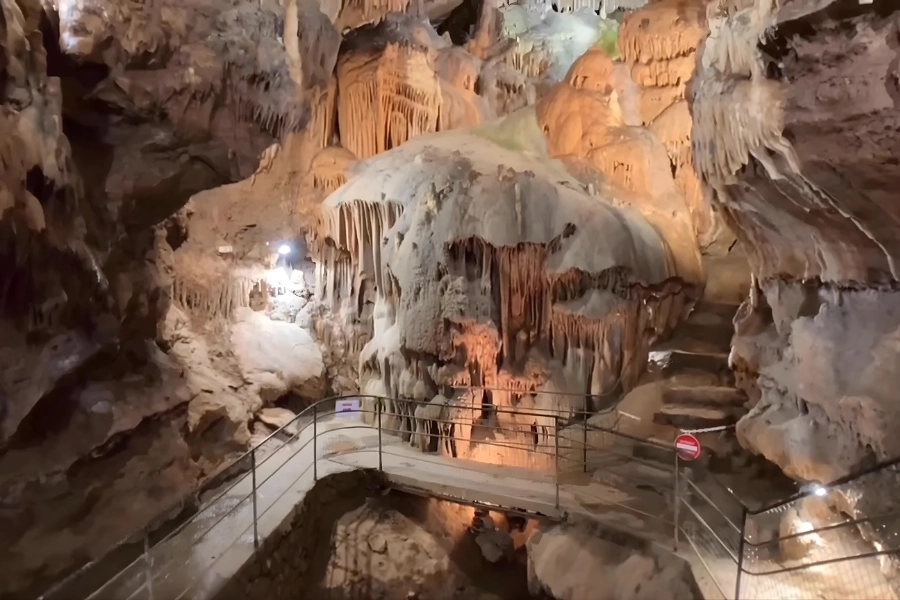 Le spectacle est saisissant : des stalactites effilées, des stalagmites majestueuses, des colonnes atteignant plusieurs mètres de haut… le tout formant une forêt minérale unique.